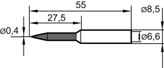 | Kształt: | grot ostry, wydłużony, Ø 0,4 mm |
