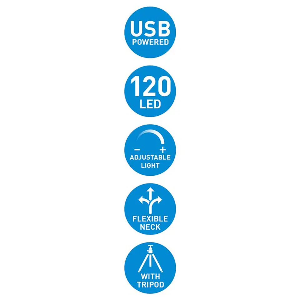 Dzięki lampie selfie na statywie marki Grundig będziesz miał zawsze najlepsze oświetlenie do swoich selfie, vlogów, tutoriali, filmów do TikTok-a, na YouTube lub Instagrama, a także innych nagrań czy też przy wykonywaniu makijażu. Poprawia jakość światła i obrazu oraz zapewnia optymalne i bardziej profesjonalne rezultaty.Lampa pierścieniowa z 12 diodami LED pozwala na równomierne doświetlenie twarzy.Stawiasz lampę na stole, podpinasz smartfon i zaczynasz filmować.Zamocuj swój telefon na elastycznej szyjce w środku lampy pierścieniowej. Wygnij go w dowolny sposób, aby zawsze uzyskać najlepsze ujęcie i najlepszy kąt. Obróć go do siebie lub od siebie, albo ustaw pod kątem. Sam wybierasz idealną ekspozycję dzięki wielofunkcyjnemu sterowaniu różnych trybów światła 3 kolory: chłodne, ciepłe i neutralne oraz 11 poziomów jasności.Dzięki temu zawsze uzyskasz zamierzony efekt.Światło pierścieniowe obsługujesz dyskretnie za pomocą wielofunkcyjnego przycisku sterującego. Jest on przymocowany do kabla o długości wystarczającej do obsługi telefonu, gdy znajdujemy się przed aparatem. Dzięki temu możesz robić sobie najdoskonalsze selfie i ujęcia. Lampę selfie ładujesz przez USB. Podnosisz lub opuszczasz statyw według własnego uznania.Specyfikacja:- Możliwość ładowania przez USB- Lampa pierścieniowa LED (średnica: 25cm)- Uchwyt na telefon z elastyczną szyjką (58 do 90mm)- Wielofunkcyjne sterowanie (3 kolory światła, 11 poziomów jasności)- Statyw zestawie- Waga produktu: 0,37 kg- Wymiary opakowania: 3,3 x 27 x 27,5 cm