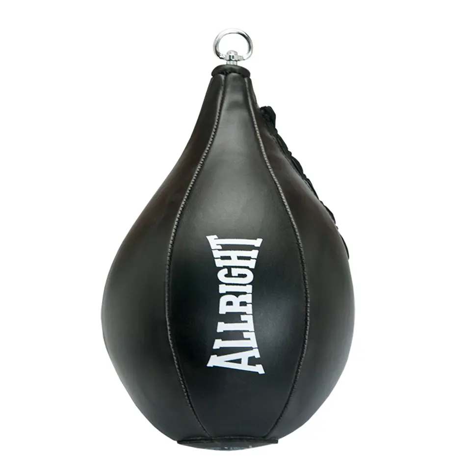 Gruszka bokserska idealna do ćwiczeń refleksu i treningu celności uderzeń. SPECYFIKACJA: Materiał: wysoko elastyczna skóra syntetyczna PU Wypełnienie: gruszka pompowana Długość: ok 31 cm Obwód: ok 60cm Waga: ok 380 g Dętka lateksowa Wzmacniane szwy Stalowy uchwyt gotowy do zapięcia w system zawieszenia