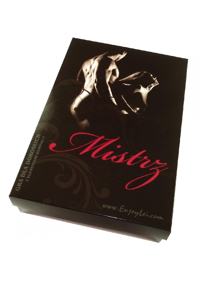 Gra „Mistrz” to nowa przełomowa formuła, która pozwala przenieść Waszą seksualną relację na kolejny poziom, zwiększyć rozkosz, powiększyć satysfakcję z życia intymnego – a nawet lepiej scementować Wasz związek…Co się wydarzy?– przejdziecie niezwykłą drogę przez plansze Wprowadzenia i Inicjacji,– odkryjecie przyjemności dominacji i uległości,– poczujecie zaufanie lub niepokój,– poznacie nowe oblicze seksu…Oto co wykorzystacie:– skórzany, zmysłowy pejczyk – by karać nieposłuszeństwo– kajdanki z kolorowym futerkiem – by zaznać słodkiej niewoli (1 sztuka), kluczyk w komplecie obwód kajdanek jest regulowany. Kolor losowy – różowy lub czerwony– Wibrator – dla masażu i penetracji. Zasilany jedna baterią AA. Kolor biały, z boku stymulujące żłobienia. Wygięta końcówka do stymulacji punktu G. Zasilanie: bateria AA (nie dołączono).– Opaskę na oczy – dla dreszczyku emocji,– Dwustronną kolorową planszę Wprowadzenia i Inicjacji,– 25 kart Mistrza i Mistrzyni– 2 pionki i kostkę,– Instrukcję, która poprowadzi Was ścieżką Mistrza…