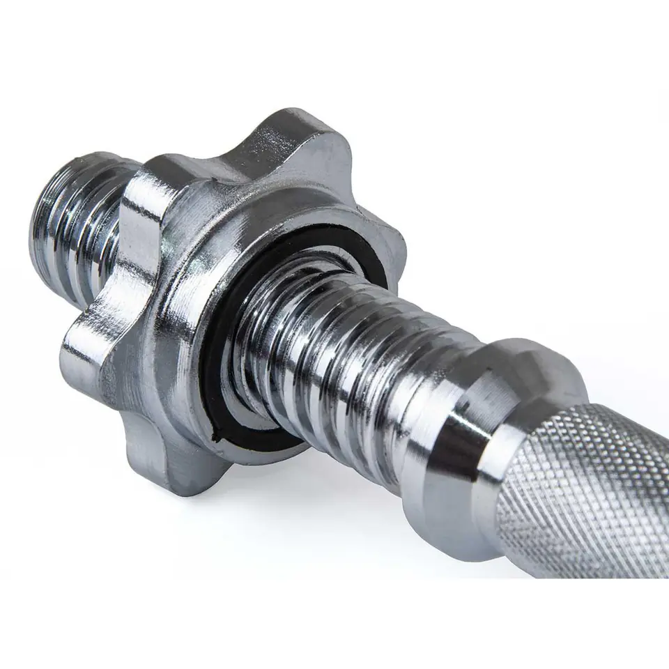 Antypoślizgowa (ryflowana) część chwytna o specjalnych nacięciach zwiększy Twoje bezpieczeństwo, zapewni pewny i wygodny chwyt, dzięki niej ryzyko wyślizgnięcia się sztangi z dłoni jest minimalne. Gwintowane zaciski precyzyjnie docisną talerze przez cały czas treningu. Dzięki temu obciążenie rozłoży się równomiernie, a trening będzie efektywniejszy.