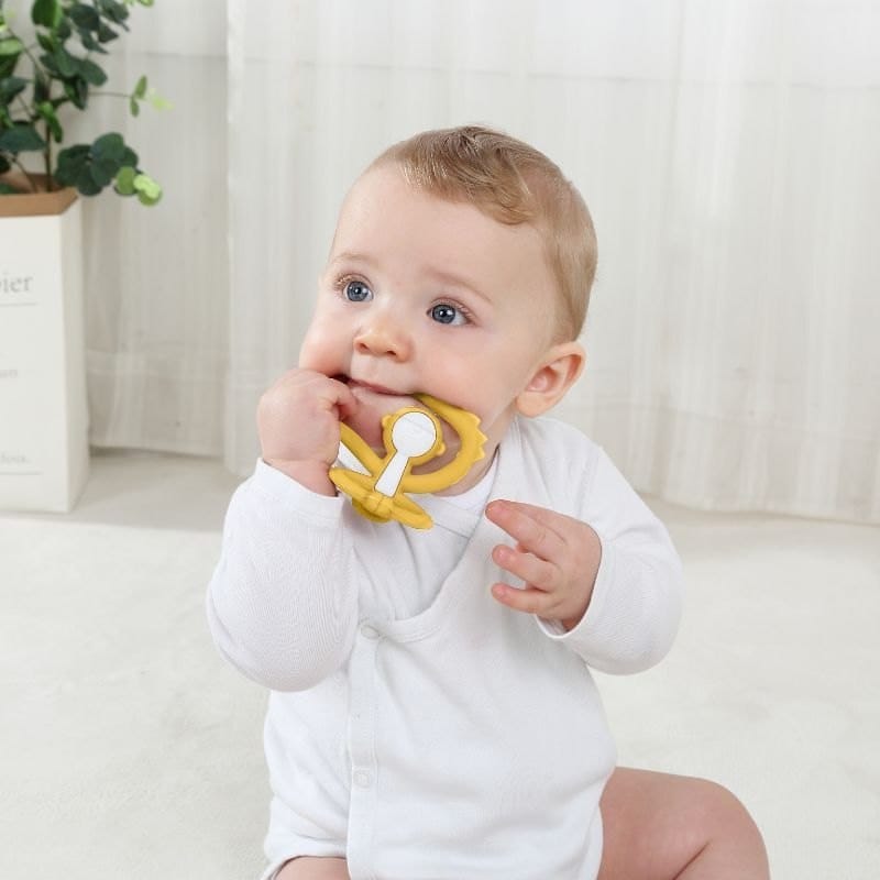 Silikonowy gryzak dla niemowlaka w kształcie małpki, zaprojektowano z myślą o najmłodszych dzieciach. Idealnie spisze się jako pierwszy gryzak dla dzieci. Produkt pełni nie tylko rolę gryzaka, ale również zabawki lub uchwytu na kubek. Ponad 20 możliwości zabawy z długimi ramionami małpki zainspirują Malucha do kreatywnej zabawy, ale także starsze dzieci. Miękki gryzak dla dzieci idealnie pasuje do małych rączek i pozwala maluchowi ćwiczyć odruch chwytania. Gryzak dla niemowlaka rozwija przy tym zdolności motoryczne dziecka. Łagodzi ból podczas ząbkowania. Produkt jest bezpieczny i łatwy w gryzieniu nawet po ochłodzeniu. Kształt małpki i jego kolorystyka zachęcą każde dziecko do zabawy. Cechy gryzaka: atrakcyjny wygląd gryzak dla niemowlaka wykonany z wysokiej jakości elastycznego silikonu spożywczego, miękki i elastyczny, gryzak dla dziecka działa łagodząco na dziąsła dziecka, idealny kształt i rozmiar umożliwiający chwytanie, kształt małpki uniemożliwia zadławienie, ponad 20 możliwości zabawy, możliwość sterylizacji, bezpieczny dla dziecka, gryzak dla niemowlaka jest wolny od BPA, ftalanów, metali ciężkich. Wymiary gryzaka: szerokość 10 cm, wysokość 10 cm, grubość 5 cm. Wymiary opakowania: średnica 6,5 cm, wysokość 13,5 cm. Mömbella® to bardzo szybko rosnąca marka stworzona w 2013 roku przez Davida Guana. Młody ojciec z dziesięcioletnim doświadczeniem pracy w przedszkolach, wpadł na pomysł stworzenia miękkich, bezpiecznych zabawek dla dzieci. Wspierając się swoimi obserwacjami i oraz badaniami na temat produktów dla niemowląt, jako specjalista w dziedzinie pediatrii zdał sobie sprawę, że brakuje na rynku dobrych gryzaków, a silikon jest najlepszym materiałem do ich produkcji. Produkty wykonywane są z miłością i troską, po to, aby zapewnić dziecku komfort i bezpieczeństwo podczas ich używania.