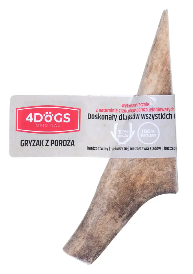 Poroże jelenia to całkowicie naturalne, trwałe zabawki do żucia, uwielbiane przez psy. Gryzaki z poroża są bezwonne, długotrwałe, nie odpryskują i pomagają uniknąć kłopotów z utrzymaniem zębów w czystości.