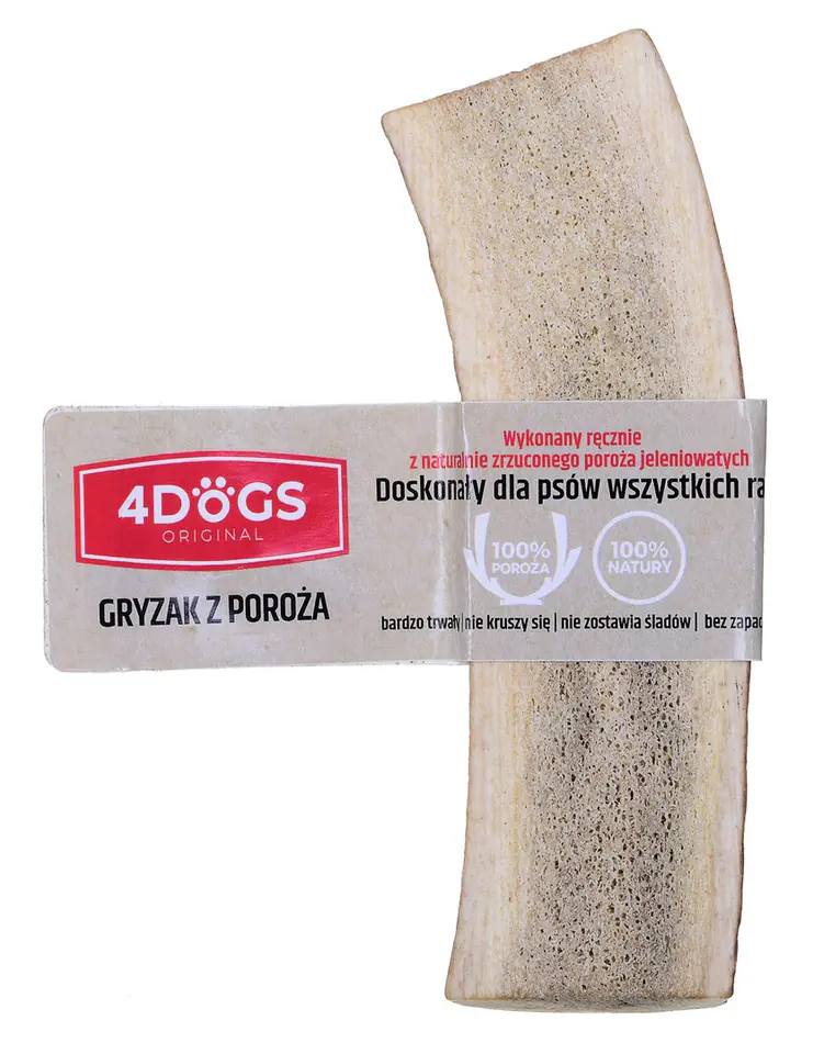 Poroże jelenia to całkowicie naturalne, trwałe zabawki do żucia, uwielbiane przez psy. Gryzaki z poroża są bezwonne, długotrwałe, nie odpryskują i pomagają uniknąć kłopotów z utrzymaniem zębów w czystości.