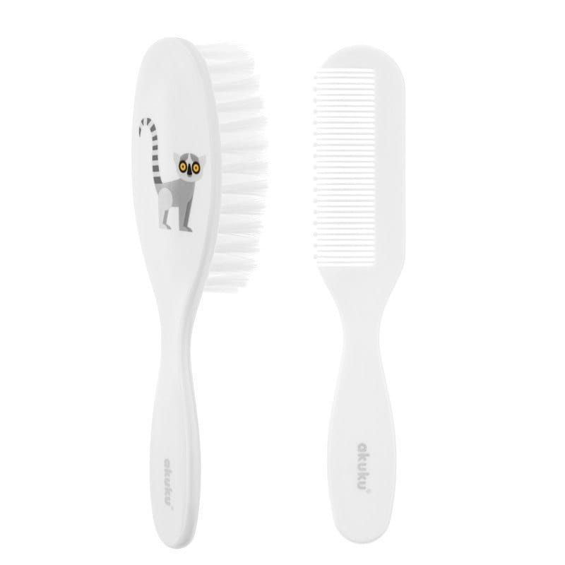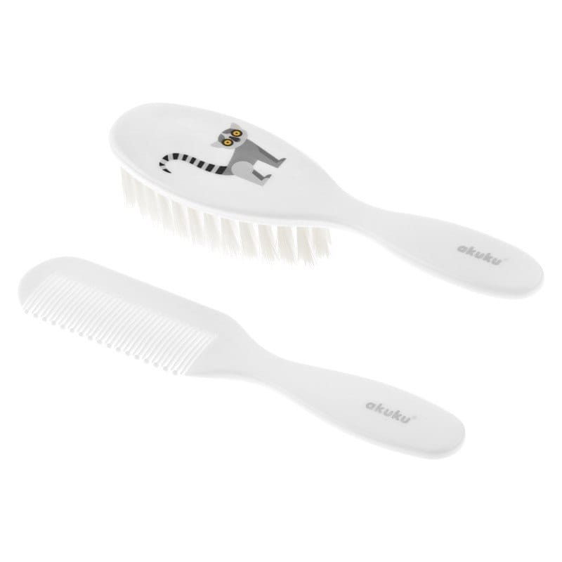 Bezpieczna i delikatna szczotka do czesania dziecięcych włosów wykonana z włosia sztucznego w zestawie z grzebieniem. Miękkie włosie idealnie nadaje się do pielęgnacji delikatnych włosków niemowlaka, a dzięki właściwościom antystatycznym nie elektryzuje ich. Grzebyk posiada zaokrąglone końce, przez co chroni delikatną skórę dziecka. Wymiary: -Szczotka: 15 x 4 x 2,5 cm -Grzebień: 15 x 3 x 0,5 cm
