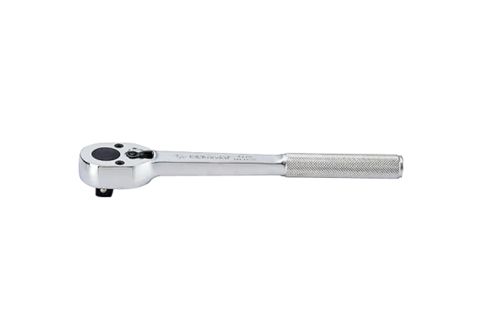 Grzechotka 1/2" King Tony. Grzechotka posiada w swoim mechanizmie 32 zęby, co umożliwia pracę co 11 stopni obrotu. Korpus wykonany ze stali chromowo-wanadowej, polerowany i chromowany, mechanizm ze stali chromowo-molibdenowej. Całkowita długość 250 mm, uchwyt moletowany Karta produktu - 4779-10FR