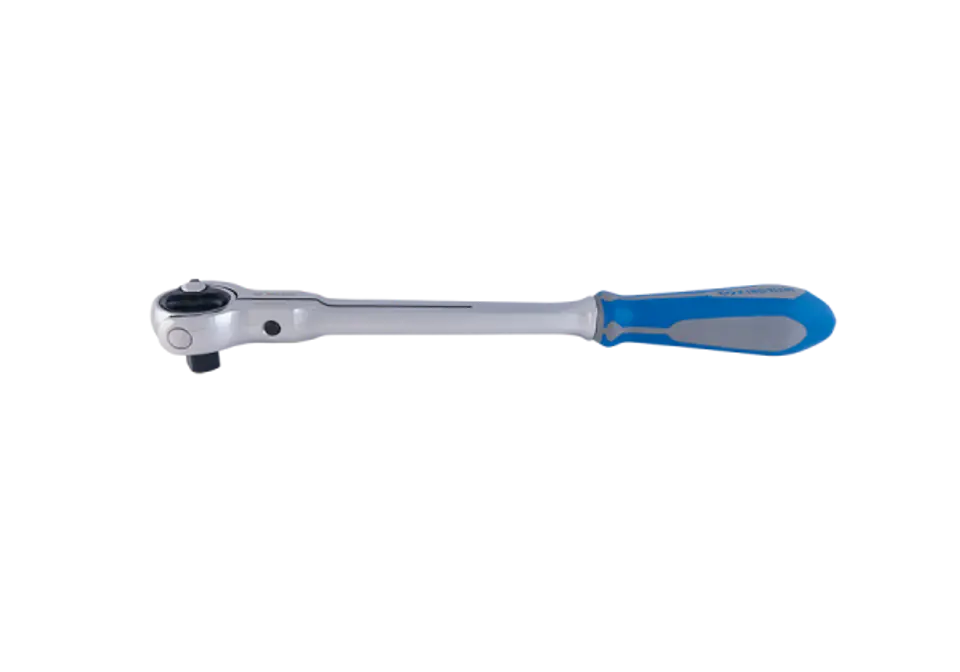 GRZECHOTKA 1/2" Z RUCHOMĄ GŁOWICĄ 72 ZĘBY, Z PRZYCISKIEM, 300mm, UCHWYT GUMOWY King Tony
