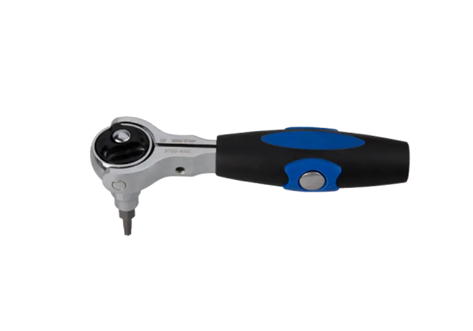 Materiał - stal stopowa chromowo-wanadowa - stal chromowo-molibdenowa (przekładnia) Wykończenie - polerowane, chromowane – kwadrat fosforowany. Grzechotka z głowicą obrotową. Elastyczna i odwracalna grzechotka z mechanizmem szybkiego uwalniania. Stopień działania przekładni 5° (72 zęby) Zastosowanie: grzechotka z uchwytem T / grzechotka wkrętakowa Karta produktu - 2752-45G