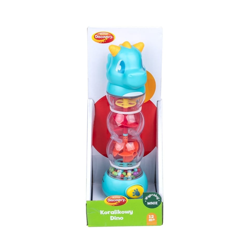 Wesoły Dino wyczaruje koralikowy deszcz i zabawi kolorowymi światełkami.