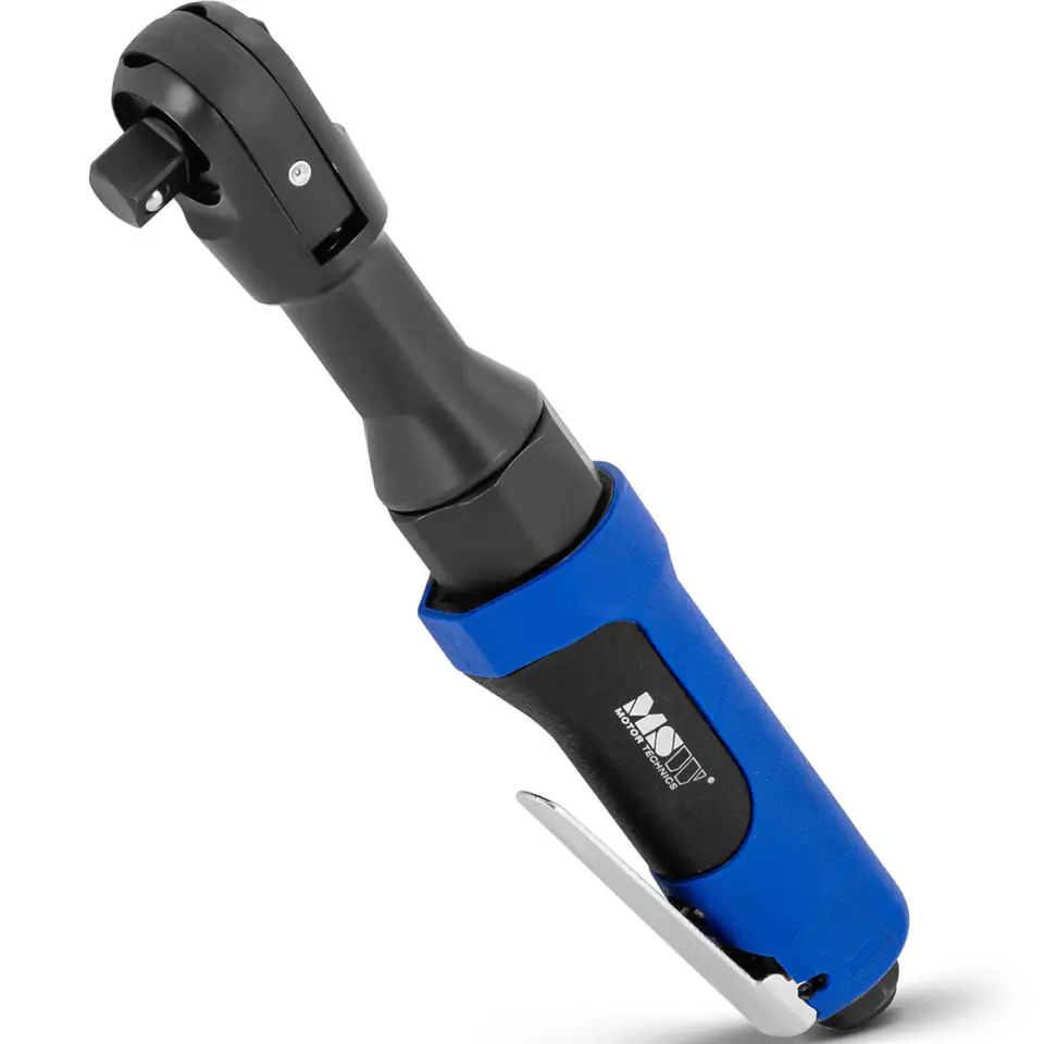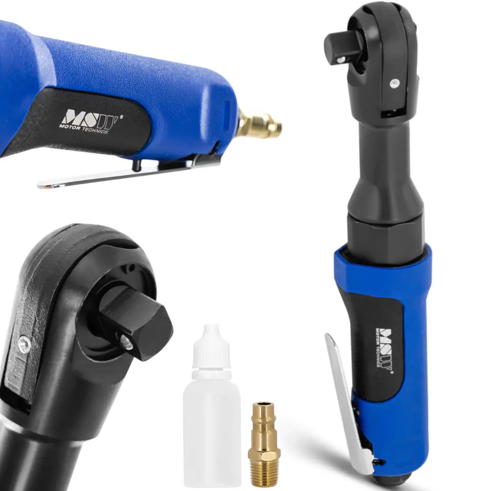 Grzechotka pneumatyczna marki MSW pozwala bez wysiłku dokręcić lub poluzować połączenia śrubowe. Sprawdzi się przy naprawie pojazdów i wszędzie tam, gdzie nie wystarczające są ręczne narzędzia. Przy ciśnieniu 6,2 bar grzechotka zapewnia efektywny moment obrotowy wynoszący 88 Nm siły obrotowej. Przepływ powietrza regulowany jest w trzech stopniach i prędkości do 180 obr./min, co gwarantuje precyzyjną pracę. Zużycie sprężonego powietrza wynosi zaledwie 113 l/min. Rękojeść z grzechotką tłumi drgania, co zapewnia dodatkowy komfort pracy.