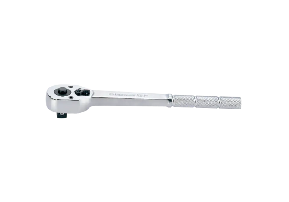 Grzechotka 1/2" King Tony z przyciskiem ułatwiającym zdejmowanie nasadki. Grzechotka posiada w swoim mechanizmie 32 zęby, co umożliwia pracę co 11 stopni obrotu. Korpus wykonany ze stali chromowo-wanadowej, polerowany i chromowany, mechanizm ze stali chromowo-molibdenowej. Całkowita długość 250 mm, uchwyt z nacięciami umożliwiającymi użycie przedłużki. Karta produktu - 4771-10BR