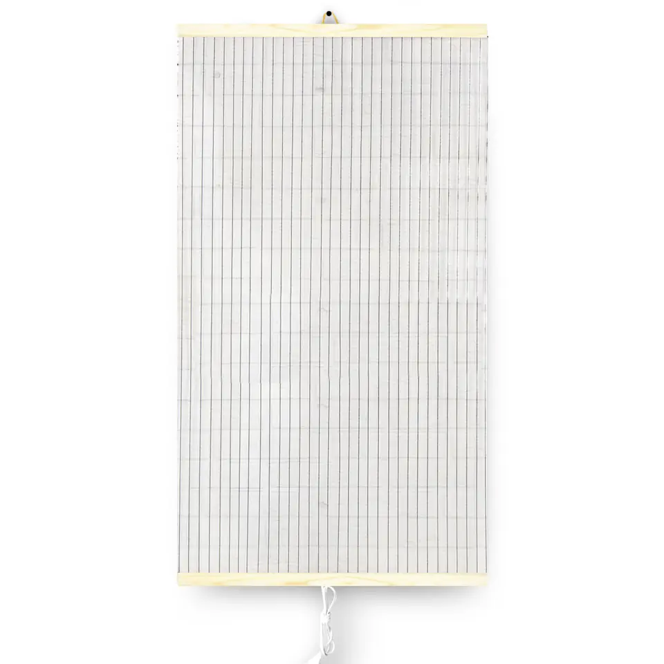 Główna część grzejnika wykonana jest z odpornej na zaginanie i łamanie polimerowej folii grzewczej, na którą nakładana jest grafika ze wzorem. Całość spięta jest drewnianymi listwami.