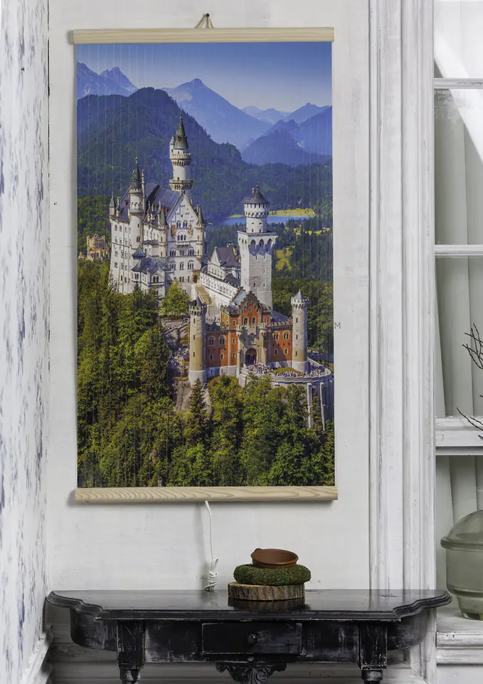 Główna część grzejnika wykonana jest z odpornej na zaginanie i łamanie polimerowej folii grzewczej, na którą nakładana jest grafika ze wzorem. Całość spięta jest drewnianymi listwami.