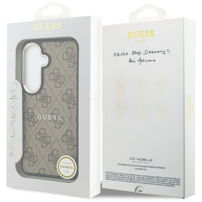 Guess 4G Embossed Ring MagSafe - Etui Samsung Galaxy S26 brązowy