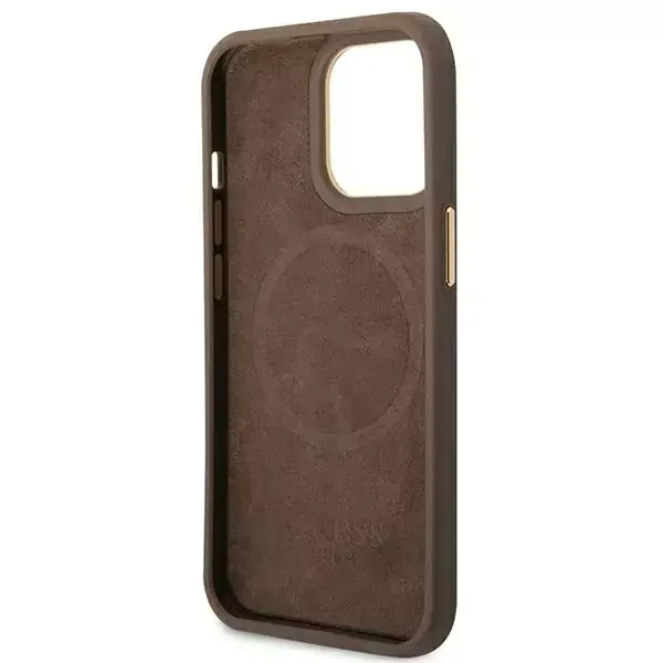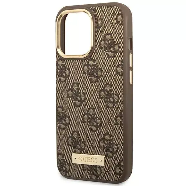 Guess 4G Logo Plate MagSafe - Etui iPhone 14 Pro brązowy