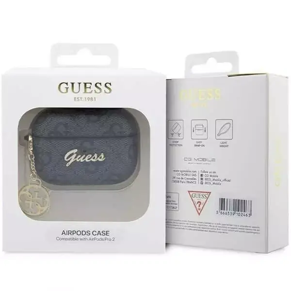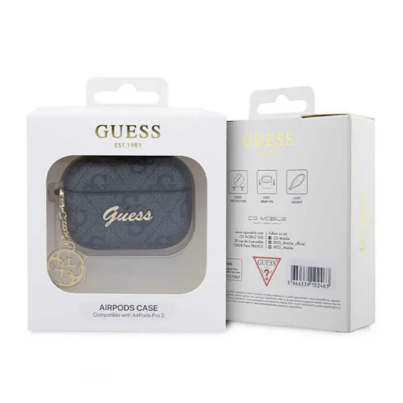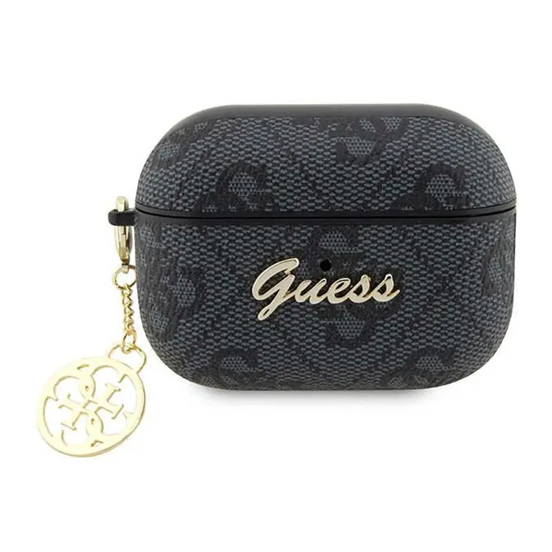 Ekskluzywne etui chroni stację ładującą słuchawek bezprzewodowych Apple AirPods i jest wszystkim czego potrzebujesz aby prezentować się stylowo i modnie. Guess 4G Charm łączy w sobie wyrafinowaną estetykę i wysoką jakość wykonania. Ekologiczna skóra z nadrukowanym wzorem 4G dodatkowo sygnowana jest metalowym logo Guess - całość sprawia, że projekt jest doskonały do każdego stylu i na każdą okazję. Elegancka złota zawieszka z znanym na całym świecie symbolem marki - legendarnym 4G- znajdująca się z boku etui sprawia, że etui nabiera eleganckiego stylu.