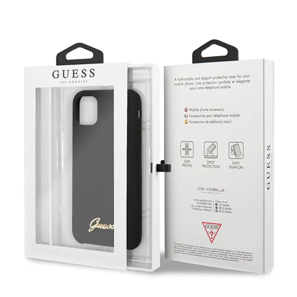 Guess, urzekająca, minimalistyczna kolekcja Silicone Vintage. Jakość, którą czuć w każdym detalu. Bardzo skrupulatnie zaprojektowane etui, wykonane z elastycznego silikonu, ze środkiem wyściełanym mikrofibrą.Wyściółka z mikrofibry skutecznie chroni iPhone’a a idealnie gładki i miękki w dotyku silikon sprawia, że telefon świetnie leży w dłoni. Kolekcja Silicone charakteryzuje się wytrzymałością, estetyką wykonania i perfekcyjnym balansem między minimalizmem a funkcjonalnością.Doskonałą jakość potwierdza złote logo Guess.Kolekcja: Silicone Vintage Gold LogoTyp: HardcaseMateriał: TPU/SilikonKolor: CzarnyKompatybilność: iPhone 11 Pro Max 6.5"Produkt wyprodukowany na licencji: Guess.