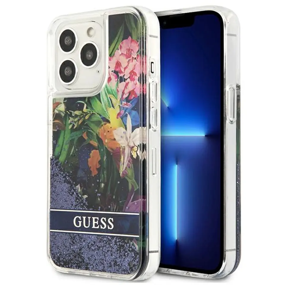 Guess GUHCP13LLFLSB iPhone 13 Pro / 13 6,1" niebieski/blue hardcase Flower Liquid Glitter