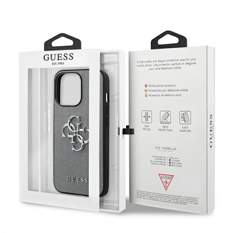 Guess GUHCP13LSA4GSGR iPhone 13 Pro / 13 6,1" szary/grey hardcase Saffiano 4G Metal Logo