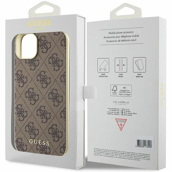 Szykowne etui Guess z kolekcji 4G Charms charakteryzuje elegancki, rozpoznawalny wzór 4G sygnowany złotym logo GUESS.