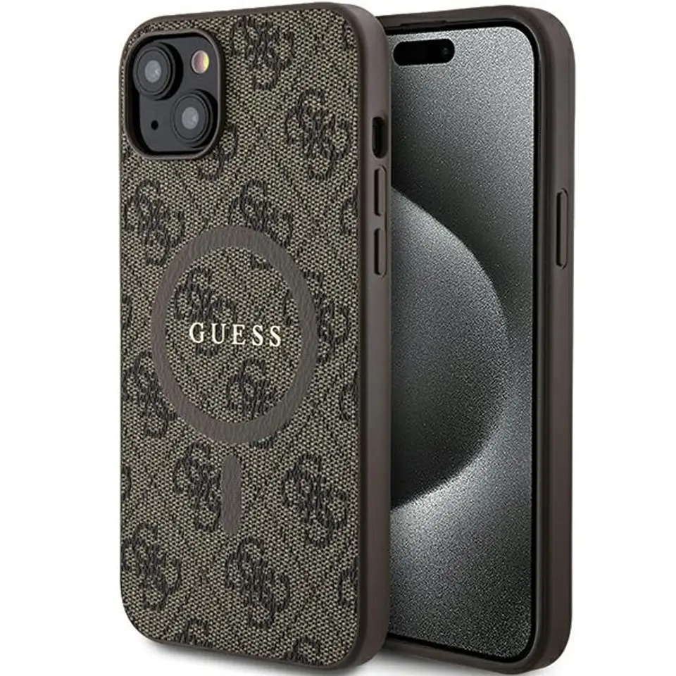 Guess GUHMP14SG4GFRW iPhone 14 / 15 / 13 6.1" brązowy/brown hardcase 4G Collection Leather Metal Logo MagSafe