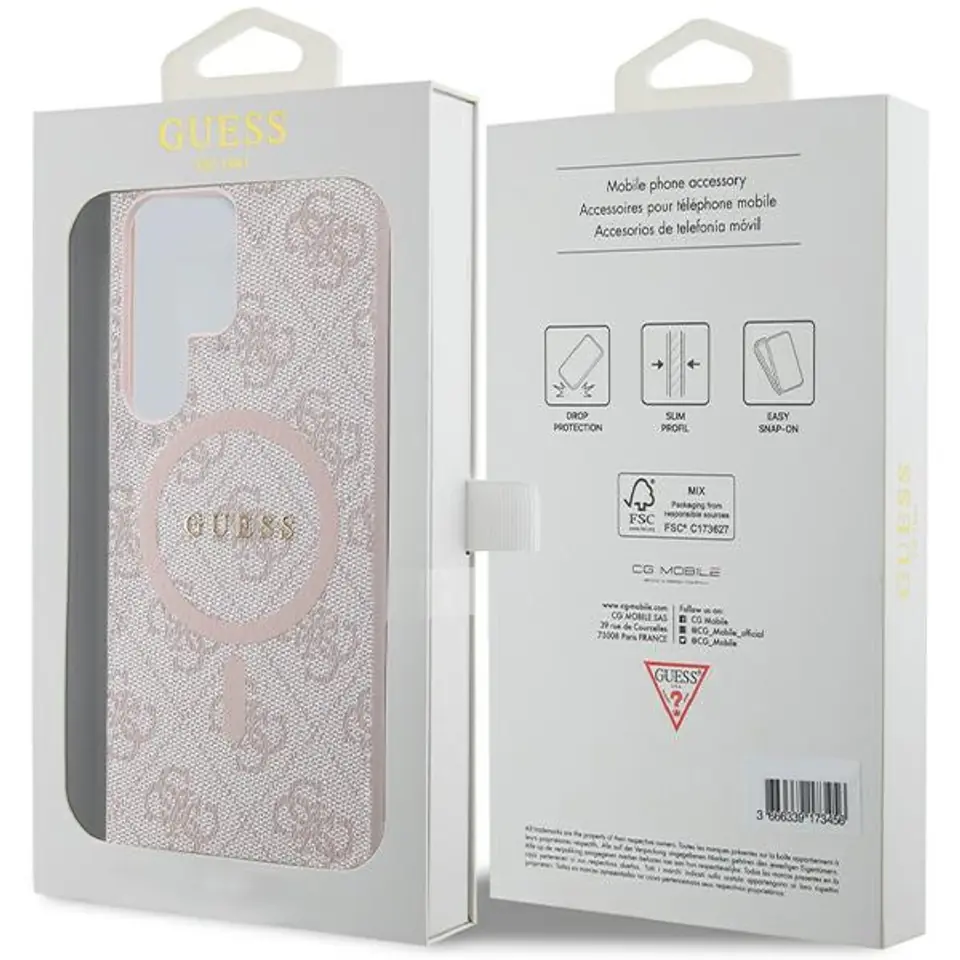 Guess GUHMS24LG4GFRP S24 Ultra S928 różowy/pink hardcase 4G Collection Leather Metal Logo MagSafe