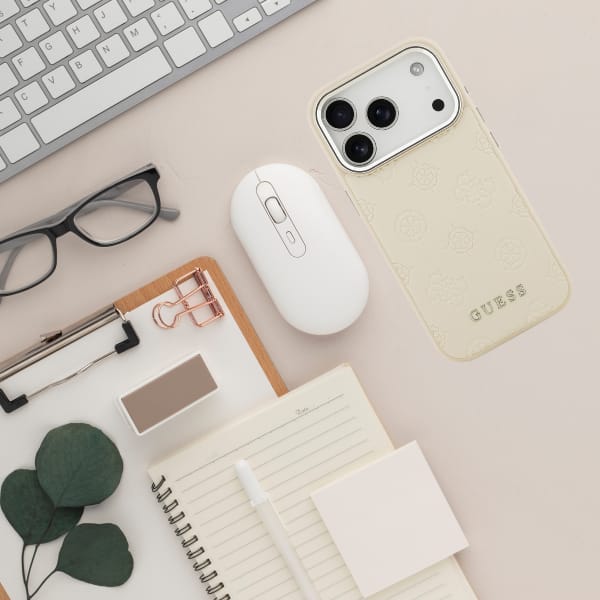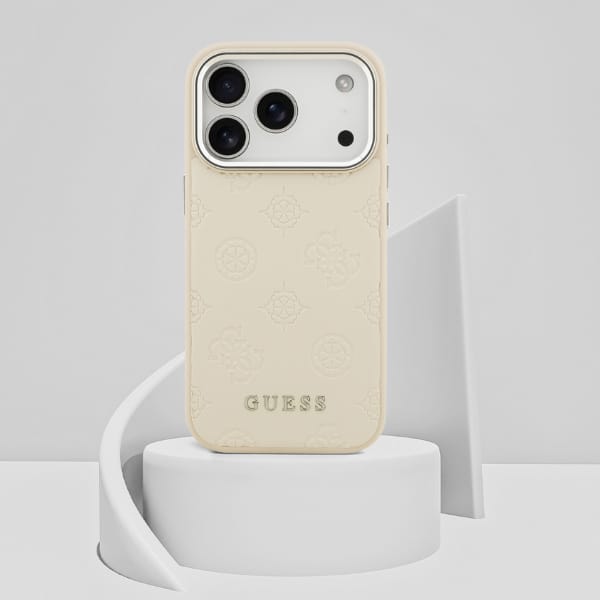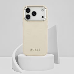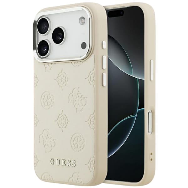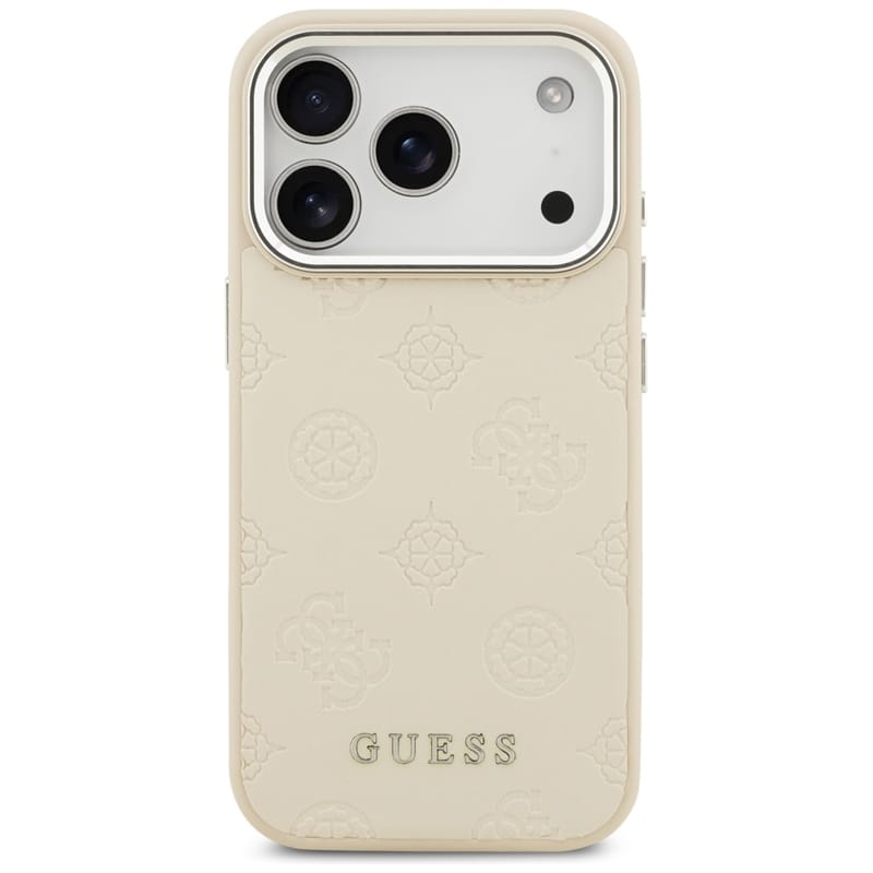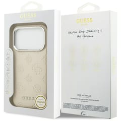 Guess Peony Hot Stamp Script MagSafe - Etui iPhone 17 Pro beżowy