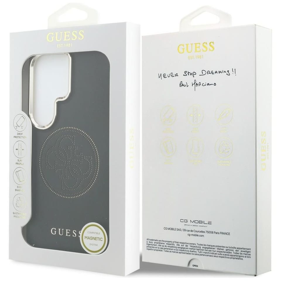 Guess Perforated Logo MagSafe to ekskluzywna linia etui ochronnych, która łączy w sobie wyjątkową funkcjonalność z unikalnym, luksusowym designem. Kolekcja ta została zaprojektowana z myślą o użytkownikach ceniących bezpieczeństwo swojego urządzenia oraz elegancki wygląd, który czyni ze smartfona modny dodatek najwyższej klasy.Tylna część etui została wykończona wysokiej jakości skórą ekologiczną, którą zdobi charakterystyczny, perforowany wzór 4G. Ten subtelny, a zarazem efektowny detal nadaje akcesorium wyjątkowego charakteru. Prestiż kolekcji podkreśla umieszczone w dolnej części logo Guess, stanowiące gwarancję autentyczności i doskonałego stylu.Konstrukcja etui opiera się na połączeniu poliwęglanu (PC) oraz poliuretanu (TPU), co zapewnia doskonałą amortyzację podczas upadków. Boki pokrowca są elastyczne, co pozwala na bezproblemowy montaż i demontaż, jednocześnie perfekcyjnie chroniąc ramkę urządzenia przed uderzeniami i uszczerbieniami. Smukła budowa i staranne dopasowanie gwarantują pełen komfort użytkowania oraz dostęp do wszystkich portów i przycisków.Delikatnie podniesione krawędzie zewnętrzne chronią ekran przed uszkodzeniem, natomiast podwyższone ranty wokół obiektywu aparatu zabezpieczają optykę przed zarysowaniem lub zbiciem.Etui zostało wyposażone w magnetyczny pierścień kompatybilny z technologią MagSafe, co zapewnia idealne przyleganie urządzenia do ładowarki oraz szybkie i wygodne ładowanie bezprzewodowe.Cechy produktu:· Wbudowany pierścień magnetyczny kompatybilny z ładowarką MagSafe· Wykonane z wysokiej jakości skóry ekologicznej, PC i TPU· Stylowy, perforowany wzór 4G oraz logo Guess· Elastyczne boki ułatwiające montaż i chroniące ramkę· Skuteczna amortyzacja wstrząsów i uderzeń· Podwyższone ramki chroniące ekran i soczewki kamery· Precyzyjne dopasowanie i pełna funkcjonalność przycisków· Oficjalna licencja GuessUWAGA: Ładowarka MagSafe nie jest częścią zestawu