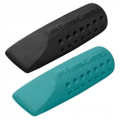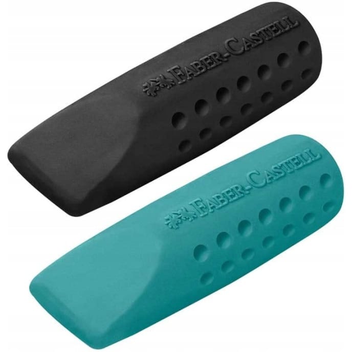 Gumka do wymazywania Grip 2001 Faber-Castell w formie nakładki na ołówek w kolorze turkusowym i czarnym lub różowym i fioletowym w etui- Nie zawiera PVC