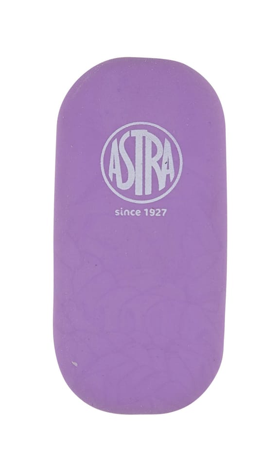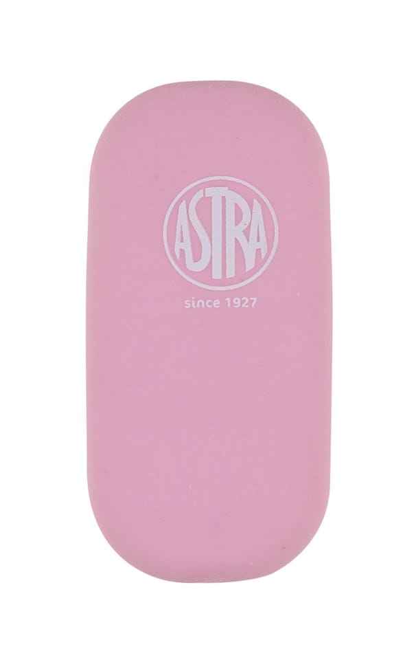 Miekka gumka w pastelowych kolorach marki ASTRA bardzo dobrze ściera i nie pozostawia śladów. Jej rozmiar umozliwia przechowywanie w piórniku.