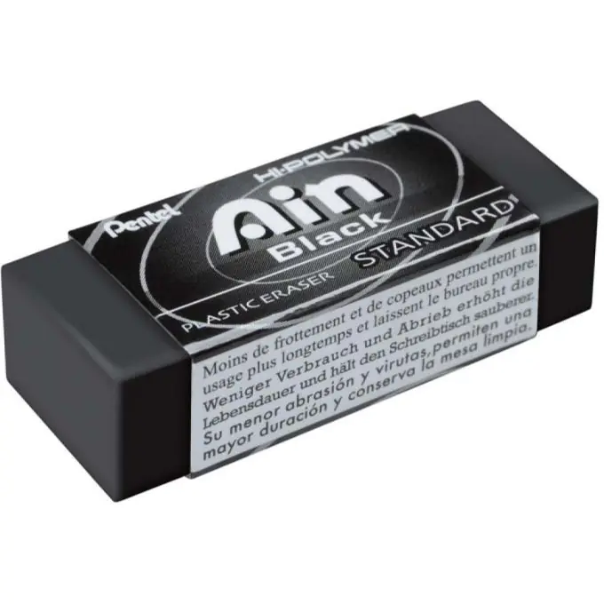 Czarna gumka olówkowa Hi-Polymer. Nie peka, nie twardnieje, nie brudzi sie. Pozostawia malą ilośc ścinek.