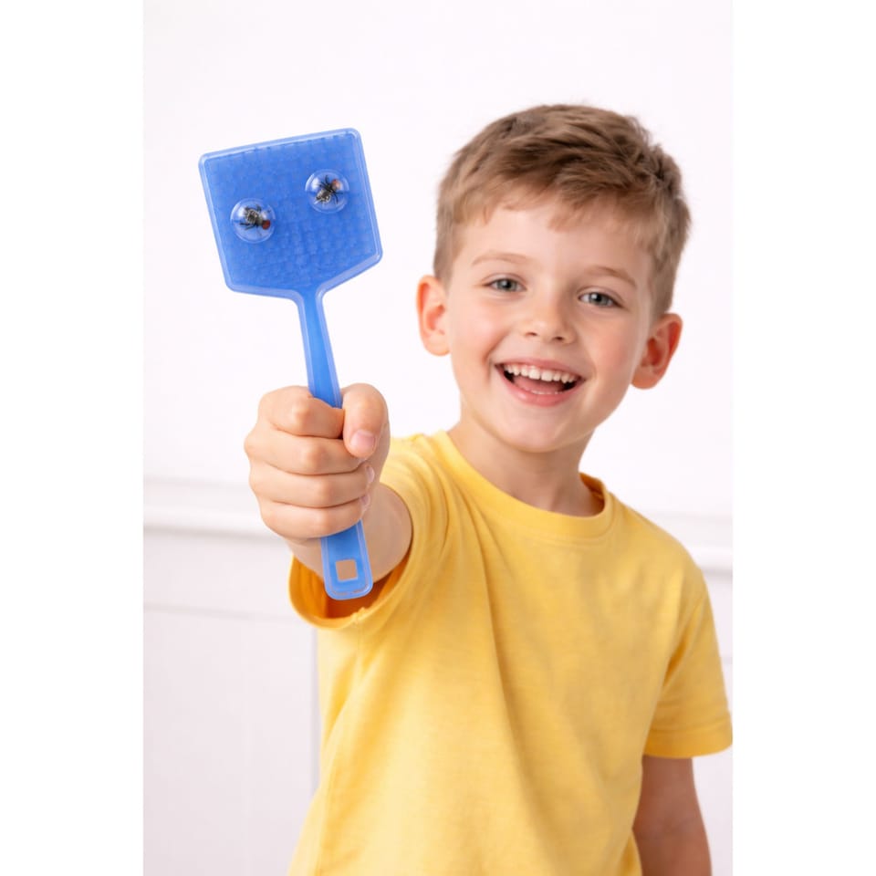 ZABAWKOWA GUMOWA ŁAPKA NA MUCHY DLA DZIECI Z MUCHAMI