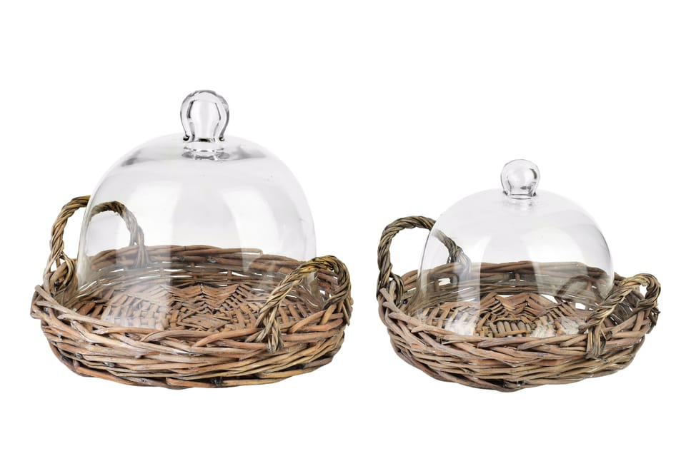 Taca GUSTAV z wikliny ze szklaną pokrywą to eleganckie połączenie naturalnych materiałów i funkcjonalnego designu. Ręcznie pleciona podstawa z wikliny wnosi do wnętrza ciepło i rustykalny urok, natomiast przezroczysta, solidna pokrywa ze szkła pozwala w estetyczny sposób wyeksponować zawartość, chroniąc ją jednocześnie przed kurzem, owadami czy wysychaniem. To idealne rozwiązanie do serwowania ciast, pieczywa, serów lub owoców . zarówno na co dzień, jak i podczas spotkań z bliskimi. Stylowy wygląd sprawia, że taca może pełnić również funkcję dekoracyjną, wprowadzając do kuchni lub jadalni harmonię i naturalną elegancję.