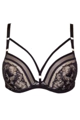 Gwen biustonosz push-up koronkowy z paskami kolor czarny, rozmiar 80D