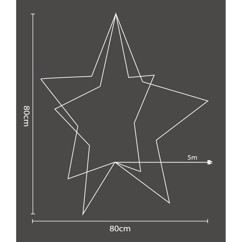 GWIAZDA 3D DEKORACYJNA STOJĄCA 120LED RGB 80CM wyposażona jest w 120 diod LED RGB, które emitują żywe, zmieniające się kolory, stworzy nastrojową atmosferę. Dzięki unikalnej konstrukcji 3D gwiazda jest widoczna z każdej strony, co czyni ją idealną zarówno do wnętrz, jak i na zewnątrz. Zawieś ją w oknie, na tarasie lub w ogrodzie, aby dodać świątecznego blasku i zachwycić gości.