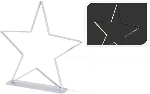 Gwiazda stojąca dekoracja świąteczna 30 led 28cm biała Gwiazda stojąca gdziekolwiek umieścimy tę gwiazdę czy to na stole w salonie, czy na komodzie w sypialni, czy też pod oknem wszędzie będzie ona przyciągać uwagę i wprowadzi widza w nastrój oczekiwania na Boże Narodzenie.Dane techniczne: Wymiary:27x5x28cm, Kolor: biały, Kolor światła: ciepły biały, 30 LED, Bateria 3xAA, Długość kabla zasilającego: 3 m,