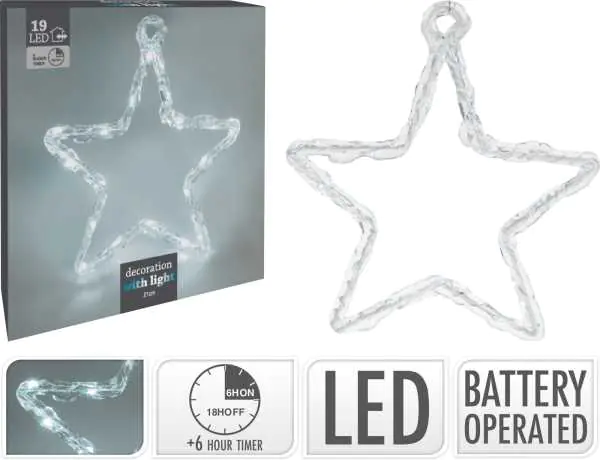 Gwiazda świąteczna dekoracja bożonarodzeniowa z akrylową powłoką 19 LED zimne białe timer 21,5 x 20,5 cm