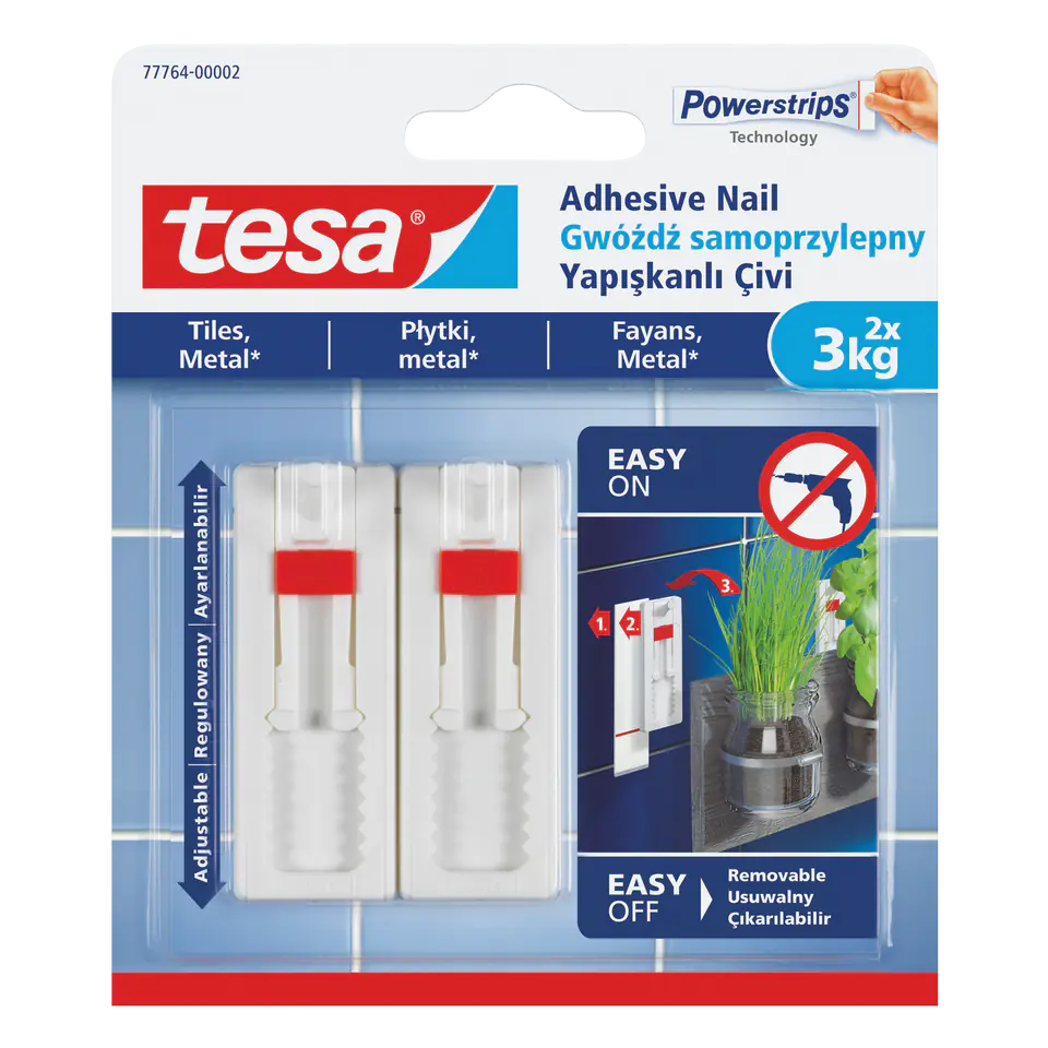 Gwóźdź samoprzylepny Tessa przeznaczony jest do szybkiego, łatwego i bezpiecznego mocowania przedmiotów bez konieczności wiercenia i uszkodzenia powierzchni. Opracowane specjalnie dla niezawodnego montażu na twardych i gładkich powierzchniach, takich jak płytki, metal, fornir.