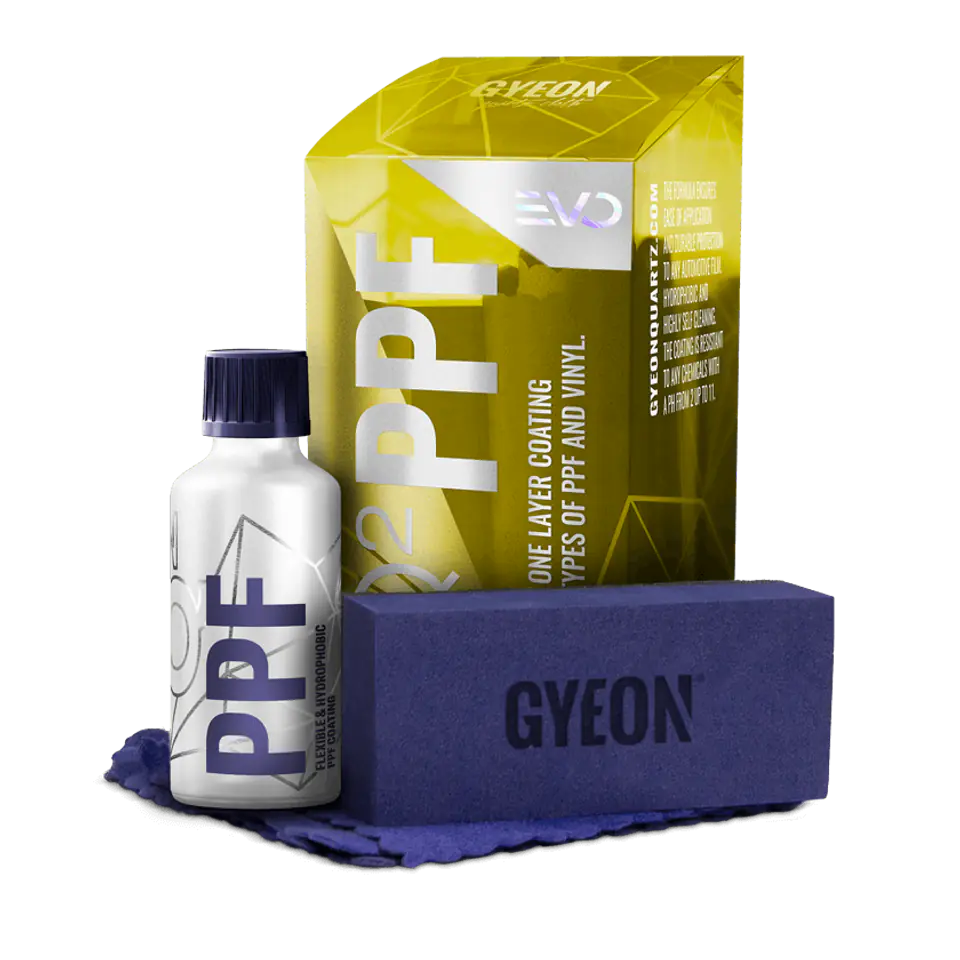 Gyeon Q2 PPF Evo – unikalna powłoka ceramiczna dla folii ochronnej. Q² PPF EVO to bardzo łatwa w aplikacji elastyczna jednowarstwowa powłoka dla wszystkich rodzajów folii PPF i winylu. Został zaprojektowany, aby przedłużyć samooczyszczanie i zmaksymalizować właściwości hydrofobowe dowolnej folii samochodowej, a jednocześnie jest bardzo trwały.