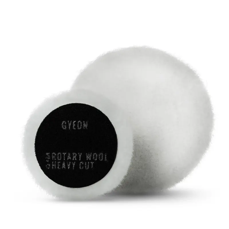 Gyeon Q2M Rotary Wool Heavy Cut 2-pack – mocno tnący pad polerski wykonany z wełny, zaprojektowany do użycia z polerkami rotacyjnymi. Zapewnia bardzo szybkie usuwanie defektów lakieru. Najwyższej jakości wełna o wysokiej gęstości i specjalnie przygotowana chemicznie pozwala znieść wiele cykli czyszczenia i mycia. Super wytrzymałe.