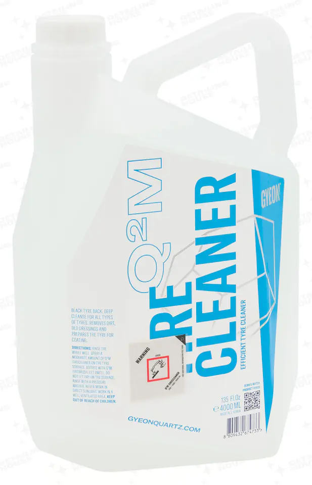 Gyeon Q2M TireCleaner – specjalistyczny i wysoce skuteczny produkt do czyszczenia opon i gumy. Z łatwością usuwa stare dressingi i głębokie, trudne zanieczyszczenia. Q²M TireCleaner jest bezpieczny dla wszystkich rodzajów opon, z uwzględnieniem tych do aut klasycznych, z białą ścianką.