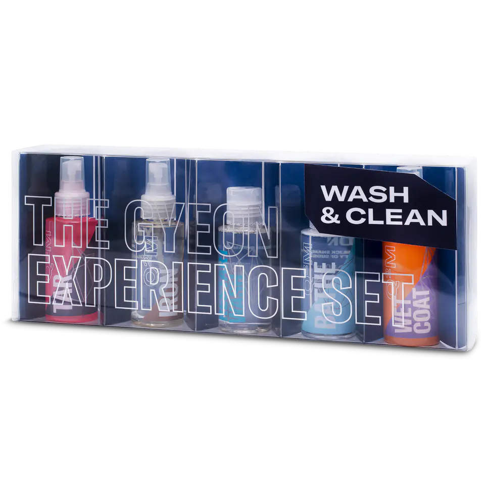 Gyeon Q2M Wash&Clean Set – zestaw składający się z 9 produktów przeznaczonych do mycia auta. Wszystkie próbki mają pojemność 80 ml i są zamknięte w dedykowanej butelce z atomizerem lub dozownikiem. Próbki są zapakowane w wysokiej jakości opakowanie zawierające ulotkę wyjaśniającą szczegółowo każdy produkt z zestawu.