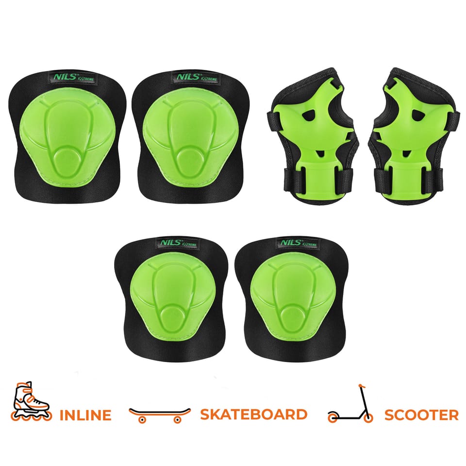H210 NILS EXTREME to kompletny zestaw ochraniaczy na nadgarstki, łokcie i kolana, zaprojektowany z myślą o osobach, które chcą zadbać o bezpieczeństwo i komfort podczas jazdy na rolkach, deskorolce czy hulajnodze. Komplet chroni najważniejsze strefy narażone na urazy podczas upadków, zapewniając większą pewność ruchu podczas rekreacyjnej aktywności.Skorupa ochraniaczy została wykonana z twardego i lekkiego tworzywa, które zwiększa poziom ochrony, a zastosowanie materiałów takich jak oddychająca membrana EVA, nylon, poliester i PE wpływa na komfort użytkowania. To połączenie sprawia, że ochraniacze są jednocześnie trwałe, lekkie i wygodne.Wszystkie elementy zestawu wyposażono w paski mocujące na rzep, które ułatwiają dopasowanie do ciała. Dodatkowo ochraniacze na łokcie i kolana posiadają elastyczne opaski, które pomagają utrzymać je we właściwym miejscu, nie krępując przy tym ruchów.Model H210 NILS EXTREME dostępny jest w pięciu wariantach kolorystycznych: czarnym, czarno-miętowym, czarno-różowym, zielonym oraz czerwonym, a także w czterech rozmiarach: XS, S, M, L. Dzięki temu łatwo dobrać wersję dopasowaną do indywidualnych preferencji i potrzeb użytkownika. Specyfikacja: Model: H210Materiał: oddychająca membrana EVA, nylon, poliester, PEElement mocujący: elastyczna opaska, pasek na rzepRozmiar: MOpakowanie: siatkowy pokrowiec Skład zestawu: Ochraniacz na nadgarstki – 2 szt.Ochraniacz na łokcie – 2 szt.Ochraniacz na kolana – 2 szt. Wymiary (+/- 0,5 cm): Ochraniacz na nadgarstki: 14x9,5 cmOchraniacz na łokcie: 13,5x10,5 cmOchraniacz na kolana: 15x10,5 cm Uwagi: Nie jest przeznaczone do użytku komercyjnegoZgodne z normą PN_EN 14120:2003+A1Gwarancja: 24 miesiące Importer: Abisal Sp. z o.o.| Polska | 41-807 Zabrze | ul. Pyskowicka 17 | e-mail: abisal@abisal.plAbisal Sp. z o.o. deklaruje, iż produkty sprzedawane przez firmę są bezpieczne i spełniają wymagania zawarte w Ustawie o ogólnym bezpieczeństwie produktów z dnia 12 grudnia 2003r. (Dz.U. z dnia 31 grudnia 2003r.)