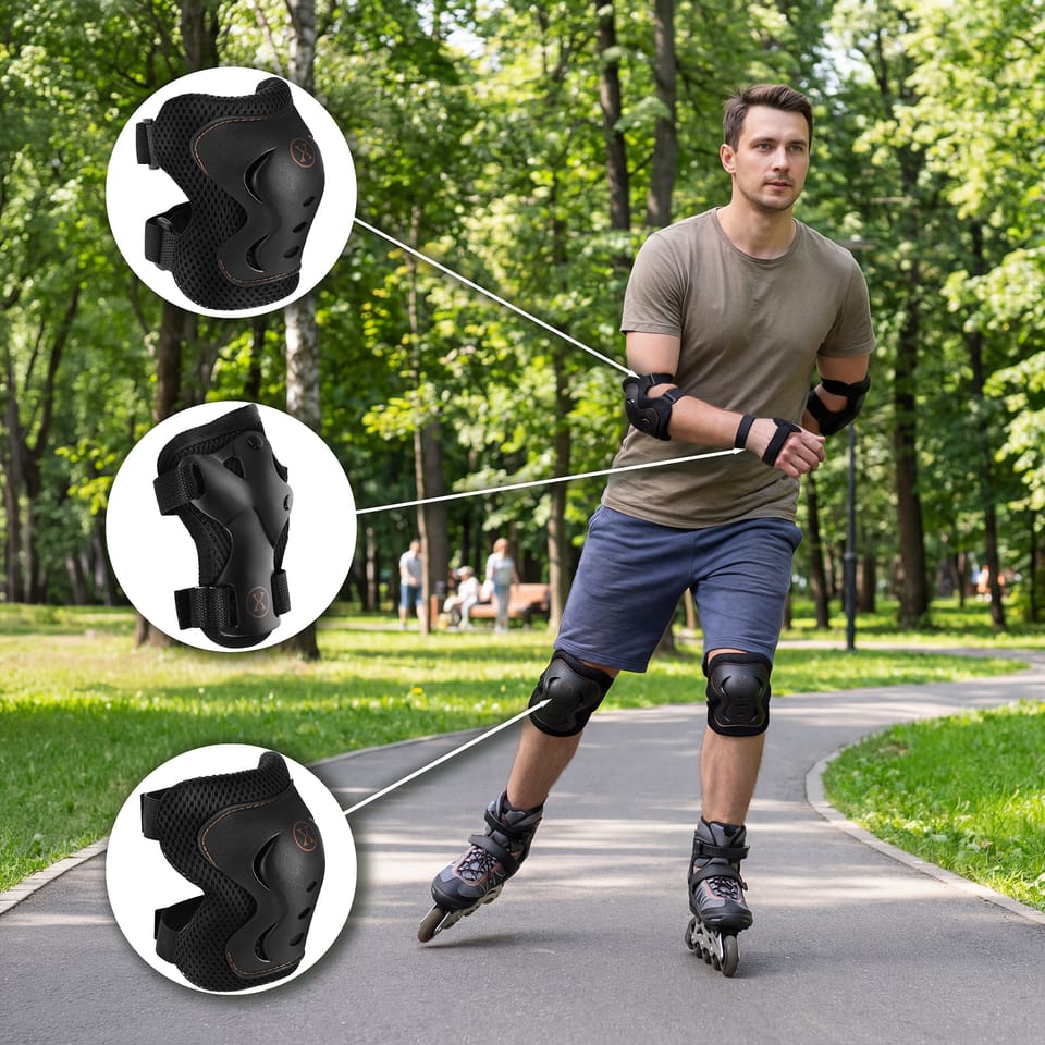 H320 NILS EXTREME to praktyczny zestaw ochraniaczy stworzony z myślą o osobach, które chcą zadbać o bezpieczeństwo i komfort podczas jazdy na rolkach, deskorolce czy hulajnodze. Komplet obejmuje ochraniacze na nadgarstki, łokcie i kolana, czyli najważniejsze strefy narażone na urazy podczas upadków.Model został wykonany z wysokiej jakości materiałów, które łączą trwałość, lekkość i wygodę użytkowania. Mocna skorupa z lekkiego tworzywa PP zwiększa poziom ochrony, a oddychająca, warstwowa pianka mesh wspiera komfort nawet podczas intensywnej aktywności.Dzięki zapięciom na rzepy oraz elastycznym taśmom ochraniacze dobrze dopasowują się do ciała i pozostają na swoim miejscu w trakcie ruchu. To rozwiązanie zapewnia wygodę użytkowania i swobodę podczas jazdy.Czarno-złota wersja kolorystyczna nadaje zestawowi dynamicznego, wyrazistego charakteru, dzięki czemu komplet nie tylko skutecznie chroni, ale również świetnie się prezentuje. Specyfikacja: Model: H320Materiał: oddychająca warstwowa pianka mesh + plastic PPZapięcie: velcro, taśma elastycznaDostępne rozmiary: S / M / L / XLOpakowanie: siatkowy pokrowiec Skład zestawu: Ochraniacze na nadgarstki – 2 szt.Ochraniacze na łokcie – 2 szt.Ochraniacze na kolana – 2 szt. Wymiary rozmiaru L (+/- 0,5 cm): Ochraniacz na nadgarstki: 15 x 15 cmOchraniacz na łokieć: 14 x 15,5 cmOchraniacz na kolano: 15,5 x 16 cm Uwagi: Nieprzeznaczone do użytku komercyjnegoZgodne z normą PN_EN 14120:2003+A1Gwarancja: 24 miesiące Importer: Abisal Sp. z o.o.| Polska | 41-807 Zabrze | ul. Pyskowicka 17 | e-mail: abisal@abisal.plAbisal Sp. z o.o. deklaruje, iż produkty sprzedawane przez firmę są bezpieczne i spełniają wymagania zawarte w Ustawie o ogólnym bezpieczeństwie produktów z dnia 12 grudnia 2003r. (Dz.U. z dnia 31 grudnia 2003r.)