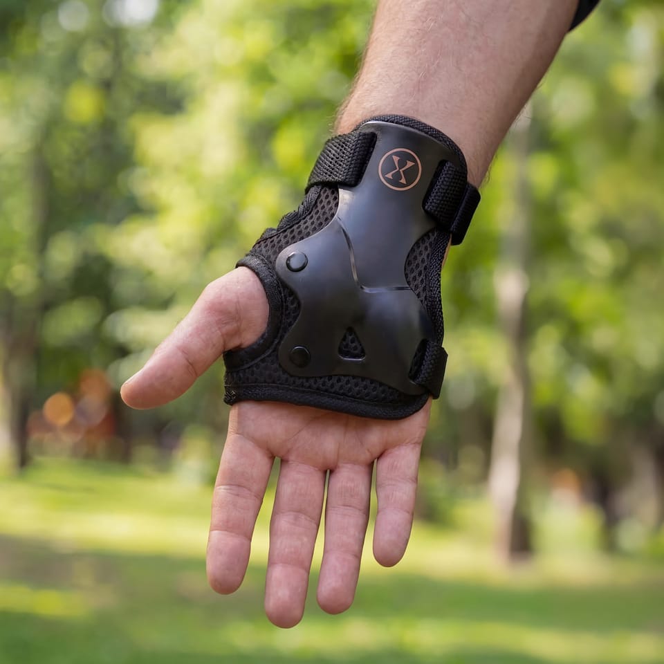 H320 NILS EXTREME to praktyczny zestaw ochraniaczy stworzony z myślą o osobach, które chcą zadbać o bezpieczeństwo i komfort podczas jazdy na rolkach, deskorolce czy hulajnodze. Komplet obejmuje ochraniacze na nadgarstki, łokcie i kolana, czyli najważniejsze strefy narażone na urazy podczas upadków.Model został wykonany z wysokiej jakości materiałów, które łączą trwałość, lekkość i wygodę użytkowania. Mocna skorupa z lekkiego tworzywa PP zwiększa poziom ochrony, a oddychająca, warstwowa pianka mesh wspiera komfort nawet podczas intensywnej aktywności.Dzięki zapięciom na rzepy oraz elastycznym taśmom ochraniacze dobrze dopasowują się do ciała i pozostają na swoim miejscu w trakcie ruchu. To rozwiązanie zapewnia wygodę użytkowania i swobodę podczas jazdy.Czarno-złota wersja kolorystyczna nadaje zestawowi dynamicznego, wyrazistego charakteru, dzięki czemu komplet nie tylko skutecznie chroni, ale również świetnie się prezentuje. Specyfikacja: Model: H320Materiał: oddychająca warstwowa pianka mesh + plastic PPZapięcie: velcro, taśma elastycznaDostępne rozmiary: S / M / L / XLOpakowanie: siatkowy pokrowiec Skład zestawu: Ochraniacze na nadgarstki – 2 szt.Ochraniacze na łokcie – 2 szt.Ochraniacze na kolana – 2 szt. Wymiary rozmiaru S (+/- 0,5 cm): Ochraniacz na nadgarstki: 13 x 14,5 cmOchraniacz na łokieć: 11,5 x 14 cmOchraniacz na kolano: 13,5 x 14 cm Uwagi: Nieprzeznaczone do użytku komercyjnegoZgodne z normą PN_EN 14120:2003+A1Gwarancja: 24 miesiące Importer: Abisal Sp. z o.o.| Polska | 41-807 Zabrze | ul. Pyskowicka 17 | e-mail: abisal@abisal.plAbisal Sp. z o.o. deklaruje, iż produkty sprzedawane przez firmę są bezpieczne i spełniają wymagania zawarte w Ustawie o ogólnym bezpieczeństwie produktów z dnia 12 grudnia 2003r. (Dz.U. z dnia 31 grudnia 2003r.)