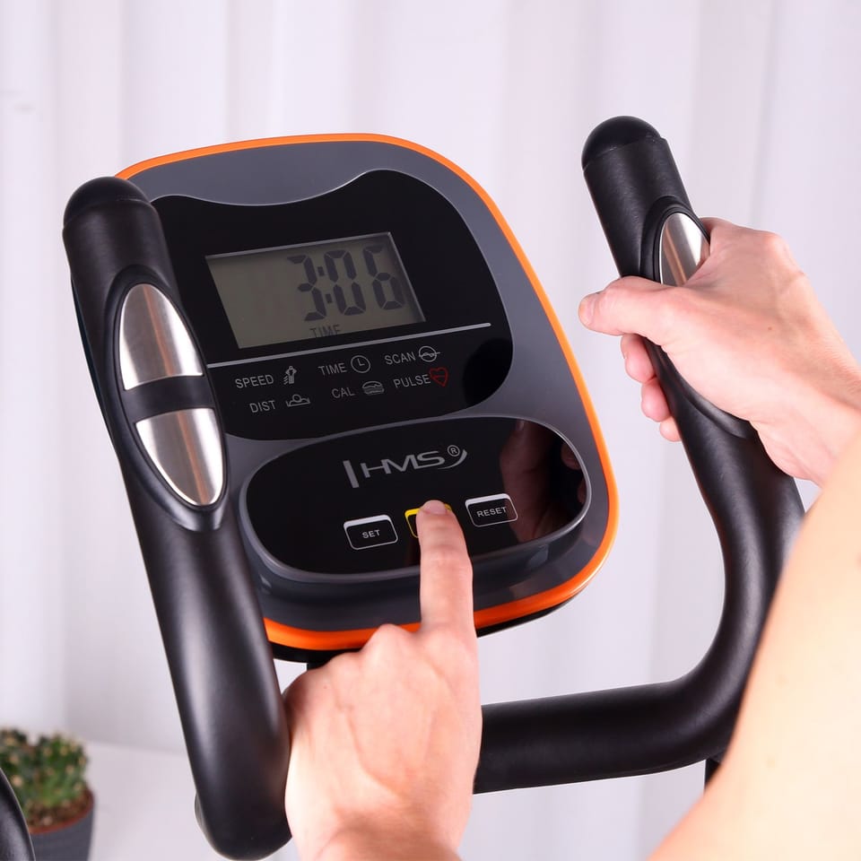H5531-i TRENAŻER ELIPTYCZNY MAGNETYCZNY HMS Szukasz skutecznego i komfortowego sposobu na poprawę kondycji, spalenie kalorii i wzmocnienie mięśni? Trenażer eliptyczny H5531i marki HMS jest dla Ciebie idealnym rozwiązaniem. Ten nowoczesny i funkcjonalny sprzęt pozwoli Ci wykonywać ćwiczenia o różnym stopniu intensywności, dostosowanym do Twojego poziomu zaawansowania i celów treningowych. Regulacja oporu W H5531i możesz samodzielnie ustawić poziom oporu, który odpowiada Twoim preferencjom i możliwościom. Trenażer ma 8 poziomów oporu, które regulujesz ręcznie za pomocą pokrętła. Im wyższy poziom oporu, tym większy wysiłek i lepszy efekt treningu. Dzięki magnetycznemu systemowi, trenażer zapewnia płynną i cichą pracę, a także minimalizuje zużycie części mechanicznych. Inteligentny komputer Śledź swoje postępy i kontroluj efektywność ćwiczeń dzięki wbudowanemu komputerowi, który wyświetla na wygodnym i czytelnym panelu LCD takie dane jak: czas, odległość, prędkość, puls i kalorie. Trenażer posiada sensory dotykowe umieszczone na kierownicy, które pozwalają na monitorowanie pracy serca i dostosowanie intensywności treningu do swojej kondycji. Aplikacja Kinomap Trenażer eliptyczny H5531i jest kompatybilny z aplikacją Kinomap, która pozwala Ci cieszyć się interaktywnym i motywującym treningiem. Aplikacja Kinomap oferuje Ci dostęp do tysięcy tras rowerowych z całego świata, które możesz oglądać na ekranie swojego urządzenia. Aplikacja jest dostępna na systemy Android i iOS, a także na smart TV i komputery. Jak połączyć się z aplikacją Kinomap? Pobierz aplikację na swoje urządzenie. Następnie w rubryce „Urządzenia” wybierz „Zarządzenie sprzętem”. Wybierz rodzaj używanej maszyny (w tym wypadku trenażer). Następnie wyszukaj markę FTMS i za pomocą funkcji bluetooth znajdź swój sprzęt (trenażer w tym czasie musi być używany). Po znalezieniu sprzętu nadaj mu jego nazwę oraz wpisz markę HMS. Na końcu zapisz i potwierdź, klikając „dodaj nowy sprzęt”. Łatwy transport i antypoślizgowe stopki Z łatwością możesz przenosić i przechowywać trenażer dzięki specjalnym kółkom, które ułatwiają jego przemieszczanie. Urządzenie ma również kompaktowe wymiary i standardową wagę, dlatego nie zajmuje dużo miejsca. Antypoślizgowe stopki zapewnią Ci maksymalne bezpieczeństwo. Dzięki atrakcyjnemu designowi trenażer stanie się ozdobą twojego pomieszczenia.Trenażer eliptyczny H5531i od HMS to sprzęt, który spełni oczekiwania każdego, kto chce poprawić swoją formę fizyczną i zdrowie w domowym zaciszu. Trenażer jest łatwy w obsłudze, bezpieczny i wytrzymały. Specyfikacja: Rodzaj oporu: magnetyczny, wewnętrzny Rodzaj regulacji oporu: ręczny Ilość poziomów regulacji oporu: 8 Waga koła zamachowego: 7 kg Długość kroku: 330 mm Komputer: czas: tak dystans: tak prędkość: tak puls: tak kalorie: tak scan: tak Wymiary wyświetlacza (mm): 80 x 42 Bluetooth: tak Pomiar pulsu: tak Sensory dotykowe: tak Pas telemetryczny: nie Miejsce na telefon: tak Kółka transportowe: tak Aplikacja: tak (Kinomap) Maksymalna waga użytkownika: 110 kg Wymiary trenażera: Długość: 122 cm Szerokość: 57 cm Wysokość: 159 cm Zasilanie: 2x AA Waga produktu: 34,5 kg Uwagi: Nie przeznaczona do użytku komercyjnego Gwarancja 24 miesiące Importer: Abisal Sp. z o.o.| Polska | 41-807 Zabrze | ul. Pyskowicka 17 | e-mail: abisal@abisal.plAbisal Sp. z o.o. deklaruje, iż produkty sprzedawane przez firmę są bezpieczne i spełniają wymagania zawarte w Ustawie o ogólnym bezpieczeństwie produktów z dnia 12 grudnia 2003r. (Dz.U. z dnia 31 grudnia 2003r.)
