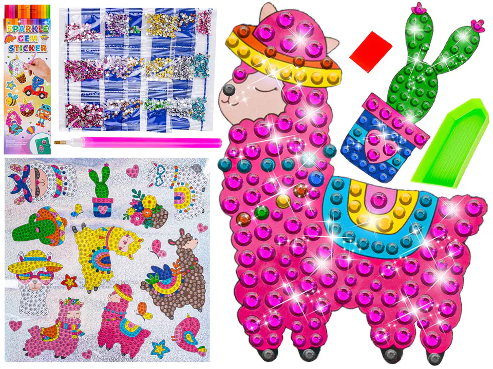 Haft Diamentowy Mozaika Diamentowa Naklejki ALPAKA LAMA Zestaw 20 Naklejek
