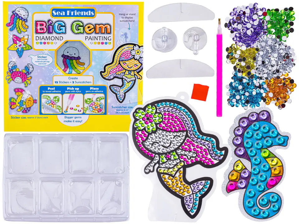 Haft diamentowy lub po prostu mozaika diamentowa to super pomysł na kreatywne spędzanie wolnego czasu. Układanka pozwala się odprężyć i wyciszyć. To świetny pomysł na relaks.Oferowany zestaw zawiera wszystkie niezbędne elementy do wykonania gotowych układanek w tematyce podwodnych zwierząt i syrenek :) Zabawa polega na tym aby odpowiednimi, bajecznie kolorowymi diamencikami wyłożyć pola na naklejkach.