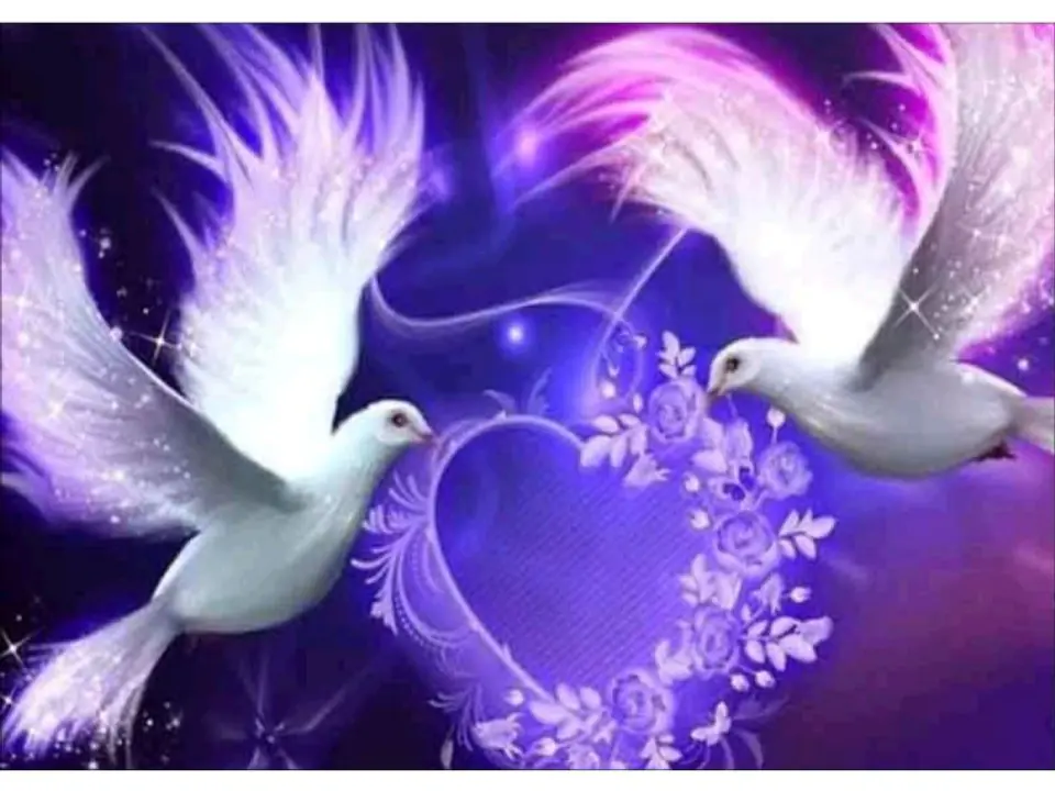 Haft Diamentowy, Obraz, Mozaika Diamentowa Diamond Painting, DWA GOŁĘBIE - SERCE 40x30cm