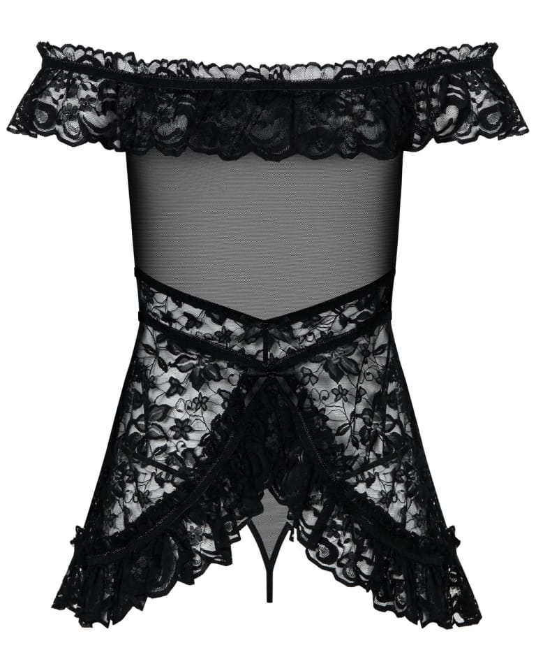- Urocza, przejrzysta haleczka umili romantyczne wieczory we dwoje. Ramiączka wykonane z koronki mogą być noszone opuszczone na ramiona. Tkanina na wysokości biustu odważnie odsłania kobiece walory. Haleczka jest u dołu szersza, wykonana z kwiecistej koronki wygląda bardzo zwiewnie na ciele. Tylna część jest wysoko wycięta, kusząco odsłaniając pośladki.Stringi do kompletu w zestawie.Tkanina: 90% acrylic, 10% spandex.